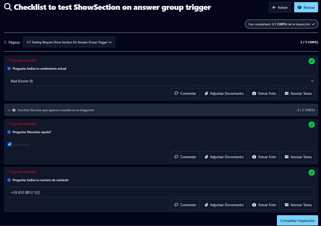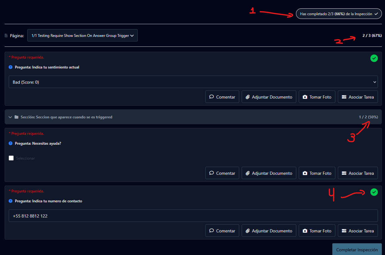 | 3️⃣ Sección | Avance de preguntas anidadas en una sección |